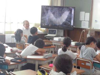 四年生はカイコを飼っています。飼いながらいろいろなことがわかりましたが,反対に疑問もたくさん出てきました。カイコの育ち方を教えてもらおうとカイコ博士をご招待しました。一杯疑問が解決できましたが,もっとたくさん新しい疑問が出てきました。