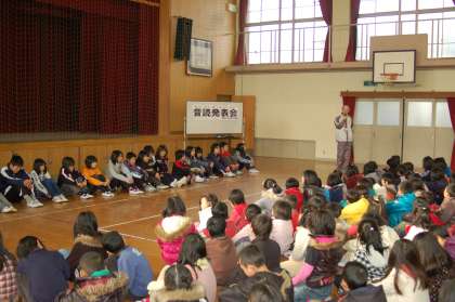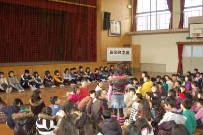 今年度最後の音読発表会ということで,6年生がまとめのような発表会をしました。