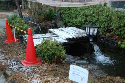 中庭も雪が積もっているところがありました。この微妙な違いに気が付いてくれるでしょうか。・・・。