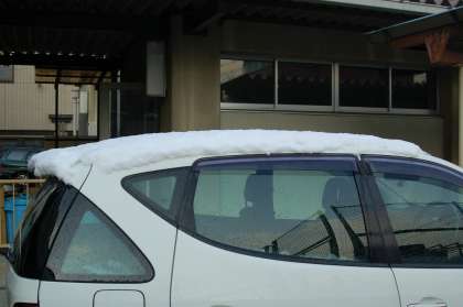 北から来る職員の車の屋根には,雪が5センチメートルほど積もっていました。