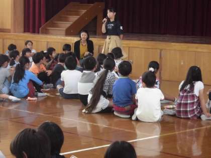 今月は小学校の人権月間です。今日は人権集会を開きました。一人一人がお互いを大切にするために何ができるかを考えた人権の花を持って集まりました。たて割りグループで発表しながら,それに対する感想を言い合いました。そして全体の中で気付いたことや感想を言いました。「友達を大切にするにはいろいろなことができることがわかりました。」「今の縦割りのリーダーのように,自分たちも6年になったら,いい縦割りリーダーになりたい,と考えるようになりました。」などいろいろな意見がたくさん出て,いい集会になりました。