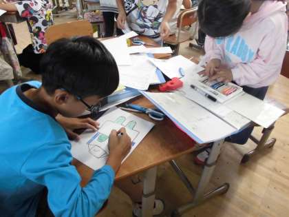 4年生はカイコのことを総合的な学習で探究してきました。そこで見つけた「カイコのすごい」を3年生に伝えようと模型やニュース・クイズなど様々な方法を考えました。いま,その準備をしています。3年生の時に1年生に伝えたことを思い出し,その経験を活かして頑張っています。うまくいくといいですね。