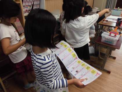 一年も後半になり,学校に慣れてきた一年生も放課後学びに仲間入りすることになりました。教室の使い方や,自分で学習を進めて行くことを知り,早速はじめました。最初は慣れないので,プリントは準備されていますが,それが終われば自分で学習することを決めます。どんどん進められるといいですね。
