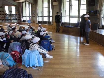 朝に雨が降り、少し地面がぬれているので、入所式は中でしました。少し肌寒いけれど、みんな元気です。