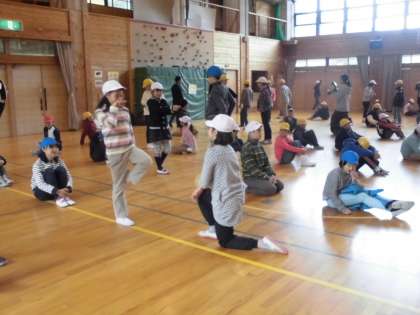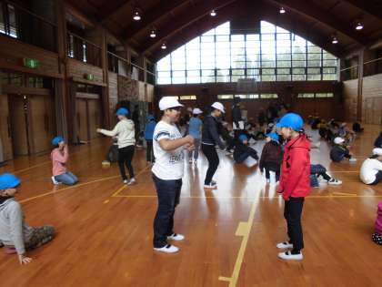 同じ中学に行く二条城北小学校との交流会を開きました。握手をして、鬼になった人と手をつないだら倒されるというゲームや、ジェスチャーでものを伝えるというゲームをしました。同じ幼稚園に行っていた人と会ったり、はじめてでも仲良くなったりしました。これから四日間でもっと仲良くなったらいいね。