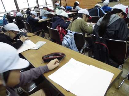 最後の振返りでした。今までのこと、今日のことを振り返って今後に生かせることを考えました。今まであまり振帰りを書くのが得意でなかった人もいっぱい書いていました。とても楽しい4日間だったのですね。