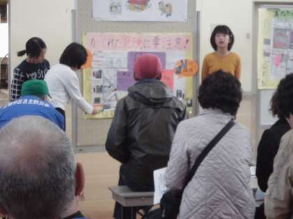 正親学区で防災訓練が行われました。今年は5年生が作った保防災マップを発表するブースを作っていただきました。たった3人でしたが,自分たちの学区の危ないところなどをしっかり伝えることができました。