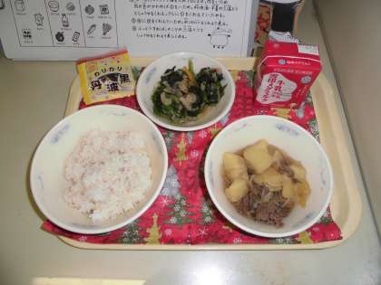 今日の「肉じゃが」は,子ども達にも教職員にも