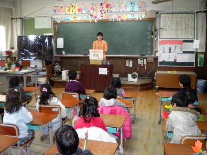 子どもたちには,少しでも学校に慣れてもらうために,お話をしたり,折り紙をしたり,紙芝居を読んだりしました。