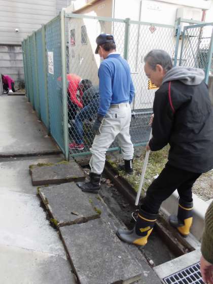 土曜日にPTA・体振・少年野球・消防分団その他多くの方々のお力をお借りしてグランドの溝掃除をしていただきました。毎年しているところはあまりたまっていなかったのですが,体育館の西側や南側北側などはミミズが出てくるほどたくさんの泥がたまっていました。野球部の子供たちやPTAの役員さんの子供たちもたくさん出てきてくれて,本当によく頑張ってくれました。おかげ様で溝がすっきりしました。