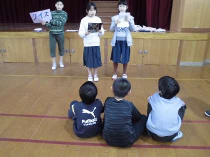 5年生が総合的な学習で防災のことについて学んでいます。学んだことを少しでも低学年の子供たちに伝えたいと「防災フェスタ」を開催しました。クイズ・すごろく・かるた・迷路など,様々な方法で楽しみながらも学べるように工夫していました。
