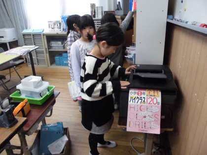一年間頑張ってきた放課後学びも13日で今年度は閉講です。たくさんのプリントを挟んだファイルの中には頑張りがいっぱい詰まっています。賢くなるだけでなく,自分で学ぶ力が身についたと思います。来年度もまた頑張ってください。 一人でコピーして頑張っている姿はとても立派です。