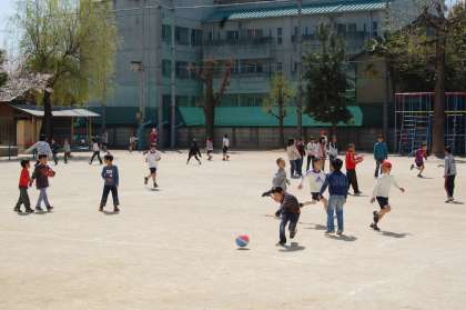 子どもたちの遊んでいる様子を見ていると,1年生の子どもたちに2年生の子どもたちが声をかけて一緒に遊んでいます。