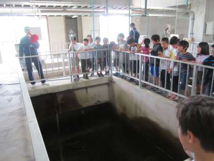 次に,石田水環境保全センターへ行きました。ここでは,家庭などから出た排水をきれいにして,川などの自然へ返す仕事について,よくわかりました。