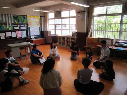 遊び方・ルールについて,お互いに発表して確かめた後,教職員の方もいっしょに輪に入り,ゲームをして楽しみました。