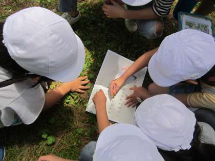 たてわりグループで仲良くオリエンテーリングをしました。お弁当を食べた後に,おやつを食べたり,たてわりグループで遊んだりして,楽しい時間を過ごすことができました。