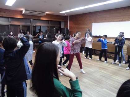 キャンプファイヤーの練習の中で、踊るパプリカとフォークダンスを踊りました。パプリカはみんなノリノリで踊っていました。フォークダンスはもう一度思い出して楽しんで踊りました。