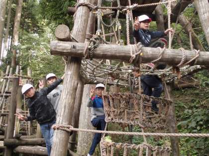 子供たちが一番楽しみにしていたのがアスレチックでした。ロープでアンバランスなところに登ったり、ターザンロープやお猿の駕籠屋などとても楽しいひと時でした。