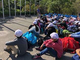 いよいよ,山の家ともお別れです。楽しかった思い出を胸に学校へ向かいます。
