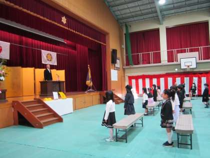 入学式では,新入生のみなさんは少し緊張した様子でしたが,先生たちの話をしっかり聞いて,立派な姿を見せてくれていました。
