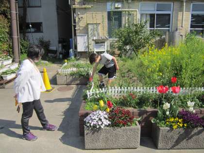 学級花壇の雑草を抜いて,きれいにしました。
