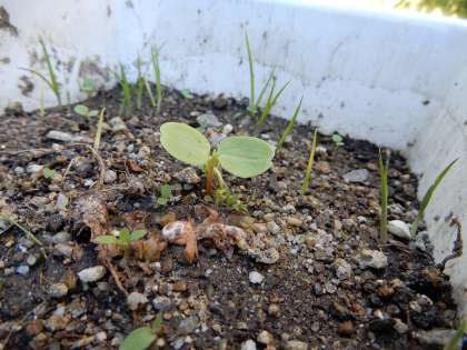ヒマワリとホウセンカのたねをうえてから一週間と少し,それぞれの「め」が出てきました!!
