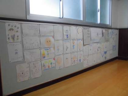 校長室前の掲示板に子どもたちの作品を掲示し始めてから3週間が経ちました。