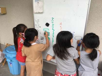 食缶返却後,1・2年生の数名が,給食室前のホワイトボードに楽しんで感想を書いていました。