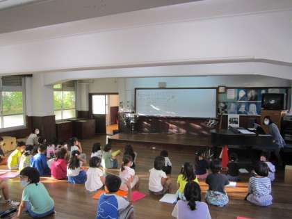 配っていただいた楽譜を見て,「この歌,しってる!」と友達とお話ししながら,楽しそうに歌っていました。
