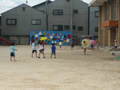 今回は,校庭開放という名のもと,暑い日の外での遊びを体験しました。