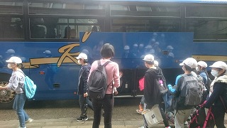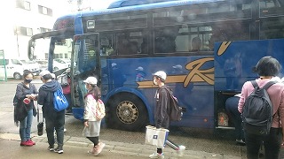 退館式で,お世話になった旅館の方にあいさつをして,バスに乗車しました。