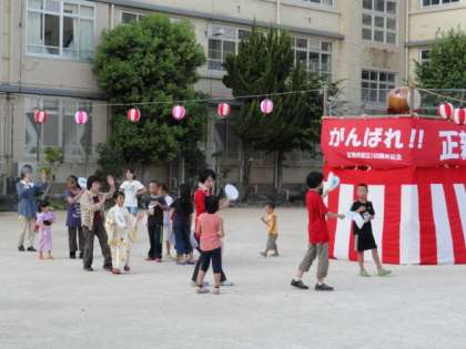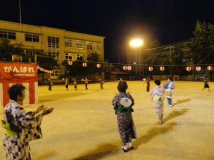 最初は見ていた子どもたちですが,途中から盆踊りに参加する子も出てきました。