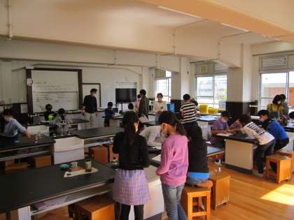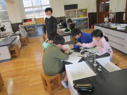 6年生が新しくなった理科室で「ものの燃え方」の実験をしていました。「ものの燃え方」について,実験の様子をしっかり観察していました。