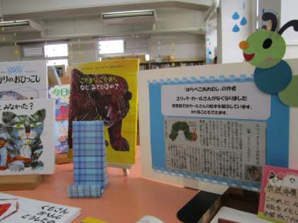 また,先日亡くなられた絵本作家のエリック・カールさんの絵本コーナーもつくってくださりました。