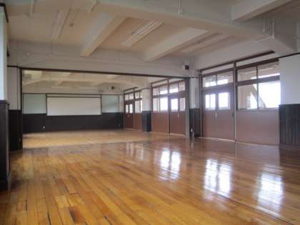 板張りの床や腰板,アーチ状の天井など,古い建物の特徴や良さを残しながら,リニューアル工事を進めています。