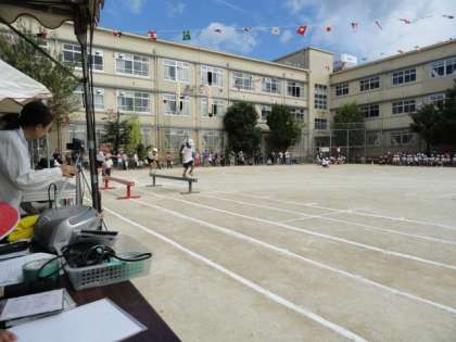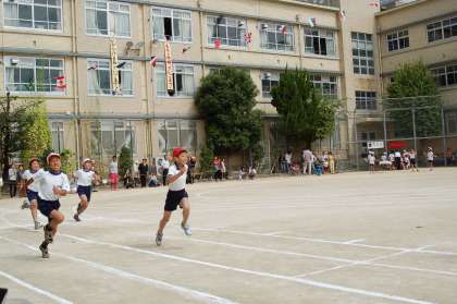 5,6年生の100メートル走はとっても力強かったです。最後まで息詰まる接戦のグループもありました。