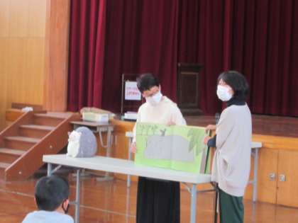 前半は,図書ボランティアさんによる「絵本の読み聞かせ」でした。11月は正親小学校の「創立記念を考える日」と図書館のマスコット「らんちゃん」のお誕生日がある月だというお話をしていただき,誕生日がテーマの絵本3冊を読んでくださりました。