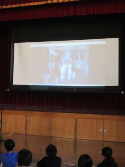 6年生が総合的な学習の時間で使っているDVDの中に,昭和12年の運動会の様子を撮影した動画がありました。その動画を観て,今と違うところと,今も変わらず続いているところを探しました。「子どもの人数が多いところが今と違う。」「校舎は今と一緒。」など,子どもたちは気づいたことを言っていました。