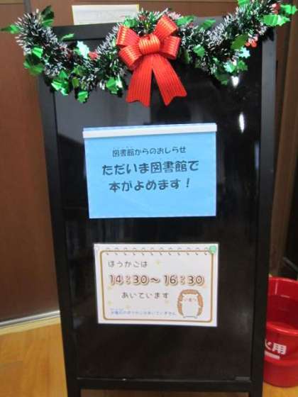 今,図書館は「クリスマス」の雰囲気でいっぱいです!図書ボランティアのみなさん,いつもありがとうございます!!