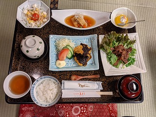 入浴を終えて夕食の時間が始まりました。