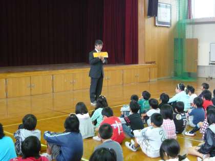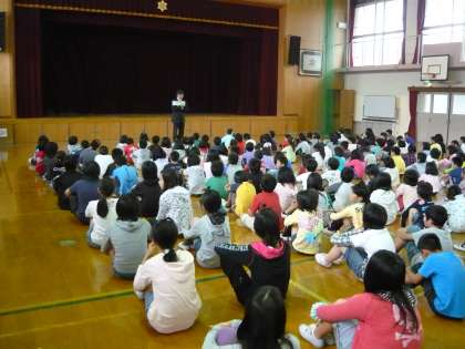 年間205日(台風による臨時休校で204日)学校に来るが,そのうち105日(104日)が終わったこと。その中でいろいろな学校行事があったり,いろいろな学習に取り組んだりしたことを話しました。また,その中で,自分の力はしっかり伸びてきているといったこと。これから渡される「通知票」にそのことが細かく記されていることも話しました。