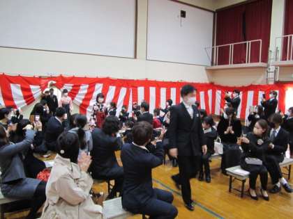 23日(水)に令和3年度卒業式を実施しました。卒業生は少し緊張した様子で式に臨んでいました。