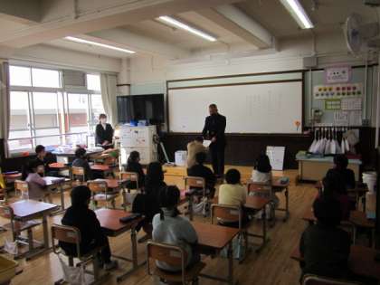 修了式の後,学校長が各教室へ行き,子どもたちへお話をしました。