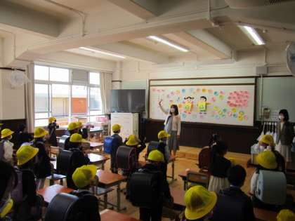 担任の先生が体育館で保護者の方にお話をしている間,他の先生から絵本の読み聞かせをしてもらいました。