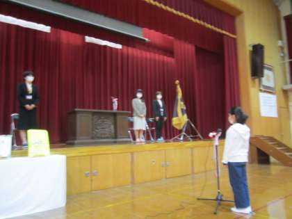 全校を代表して,6年生児童が「お迎えの言葉」を言いました。