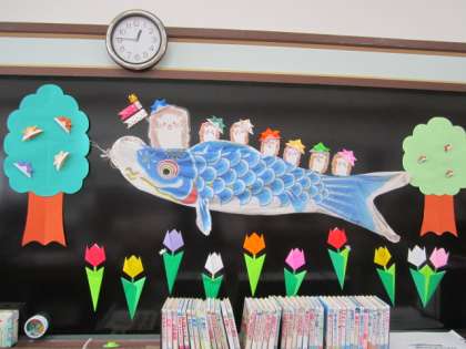 いつも図書ボランティアのみなさんが,図書館の整備をしてくださっています。5月行事に合わせて,掲示物や本のコーナーを新しくしていただきました。