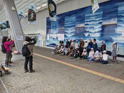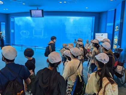 名古屋港水族館に着きました。集合写真を取りました。