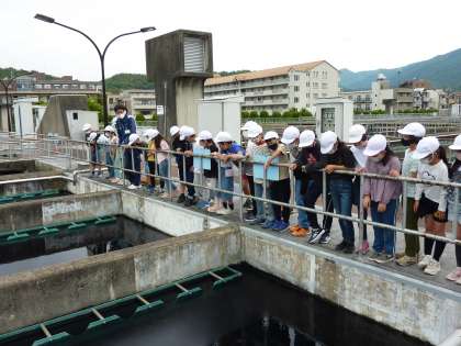 16日(月)に松ケ崎浄水場へ行きました。京都市の水道水や浄水場のはたらきについて,職員の方にたくさん教えていただきました。