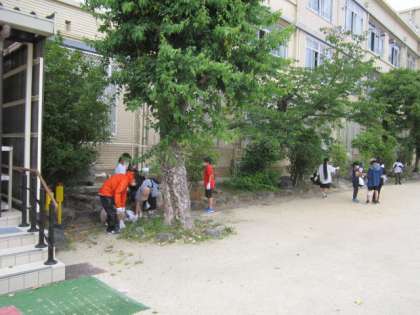 30日(月)の清掃時間に,「ゴミ0の取組」を行いました。クラスごとに校内の場所を分担し,全校みんなで学校中をきれいにしました。