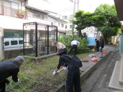 1日(月)は「正親清掃の日」です。地域やPTA本部,5年生の保護者の方々にお世話になり,校庭をきれいにしていただきました。